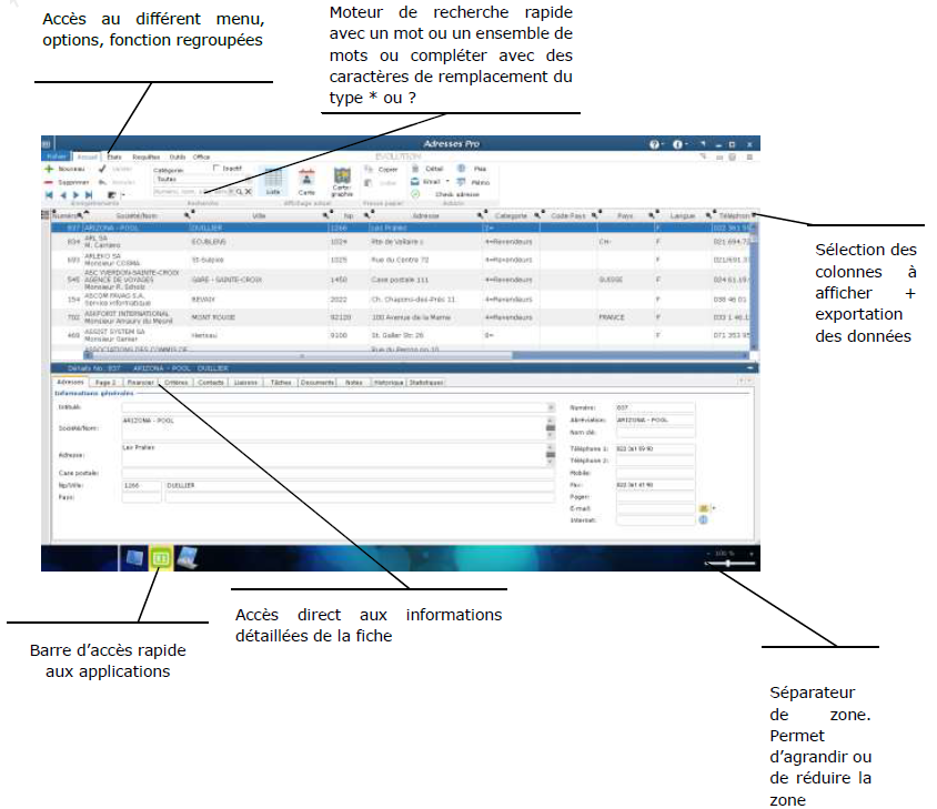 Cette barre située en bas de l’écran vous permet de basculer par simple par un simple clic sur les différents modules ouvert.
