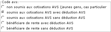 Pour l’attestation de salaire AVS, il y a lieu de saisir pour chaque personne le numéro d’assure AVS à 13 chiffres du certificat d’assurance. Lorsqu’une personne n’est pas encore soumise aux cotisations AVS, on saisira la date de naissance.