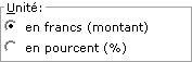 Nombre d’unités pour les valeurs absolues. Les valeurs en pourcent ( % ) calculeront les unités par le chaînage.